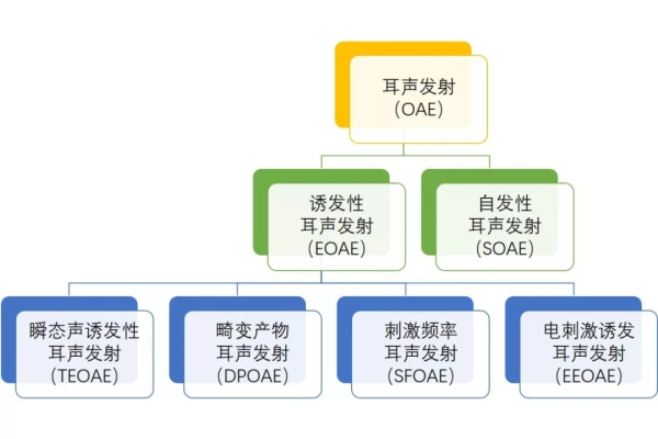 耳声发射依据是否有外界刺激声信号诱发,以及由何种类型的刺激声诱发,耳声发射按其发生机制不同,可分为两大类:一是自发性耳声发射,主要是耳蜗自发活动的反应;二是诱发性耳声发射,即通过外界不同的刺激声模式引起各种不同的耳蜗反应,其中临床上常用的两种诱发性耳声发射是DPOAE和TEOAE。
