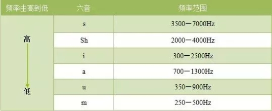 这里面既有元音也包括了摩擦音,频谱范围基本反映了语音在250~8000Hz的频率分布。因此,林氏六音可以真实的反映言语和听力的实际情况。