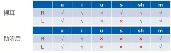 让受试者辨别两个声音是否相同,开始应该用差异很大的声音,例如/a/和/s/,之后可用比较相似的声音,例如/sh/ 和/s/——测试“辨别”;